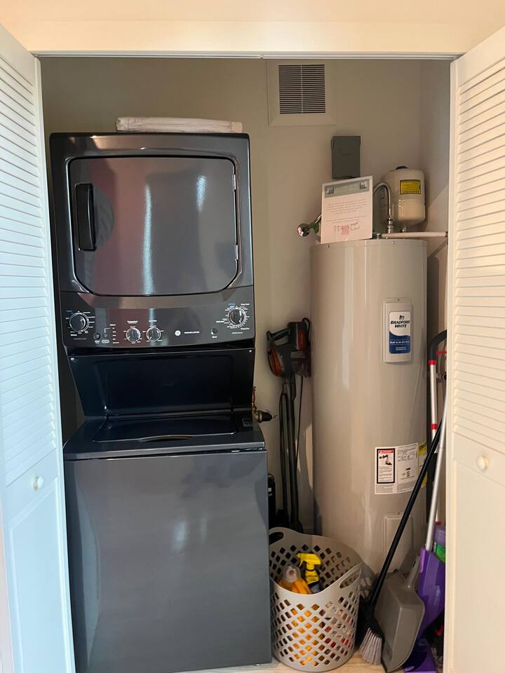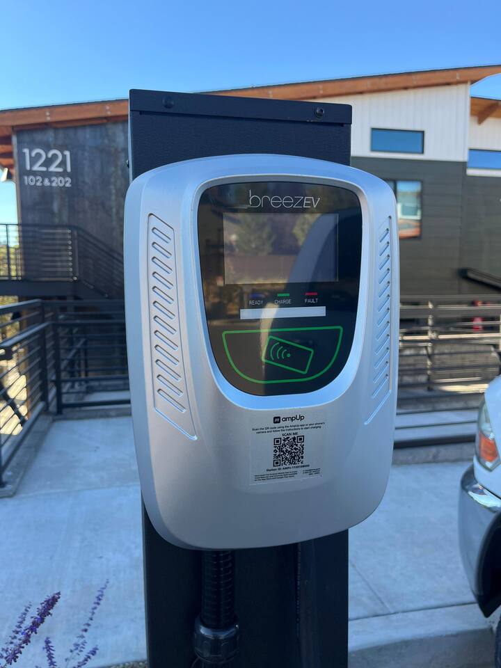 ✅ 1 free parking spot right in front of unit ✅Mini-split full climate control ✅Many nearby restaurants ✅Fully stocked kitchen, coffee & tea ✅58" TV and popcorn maker for movie night! ✅EV charger on premises! Breez level 2 charger charges at 40 cents per KW. Scan QR code Note: ensure to unplug and park infront of the unit once charging complete to avoid excess expense