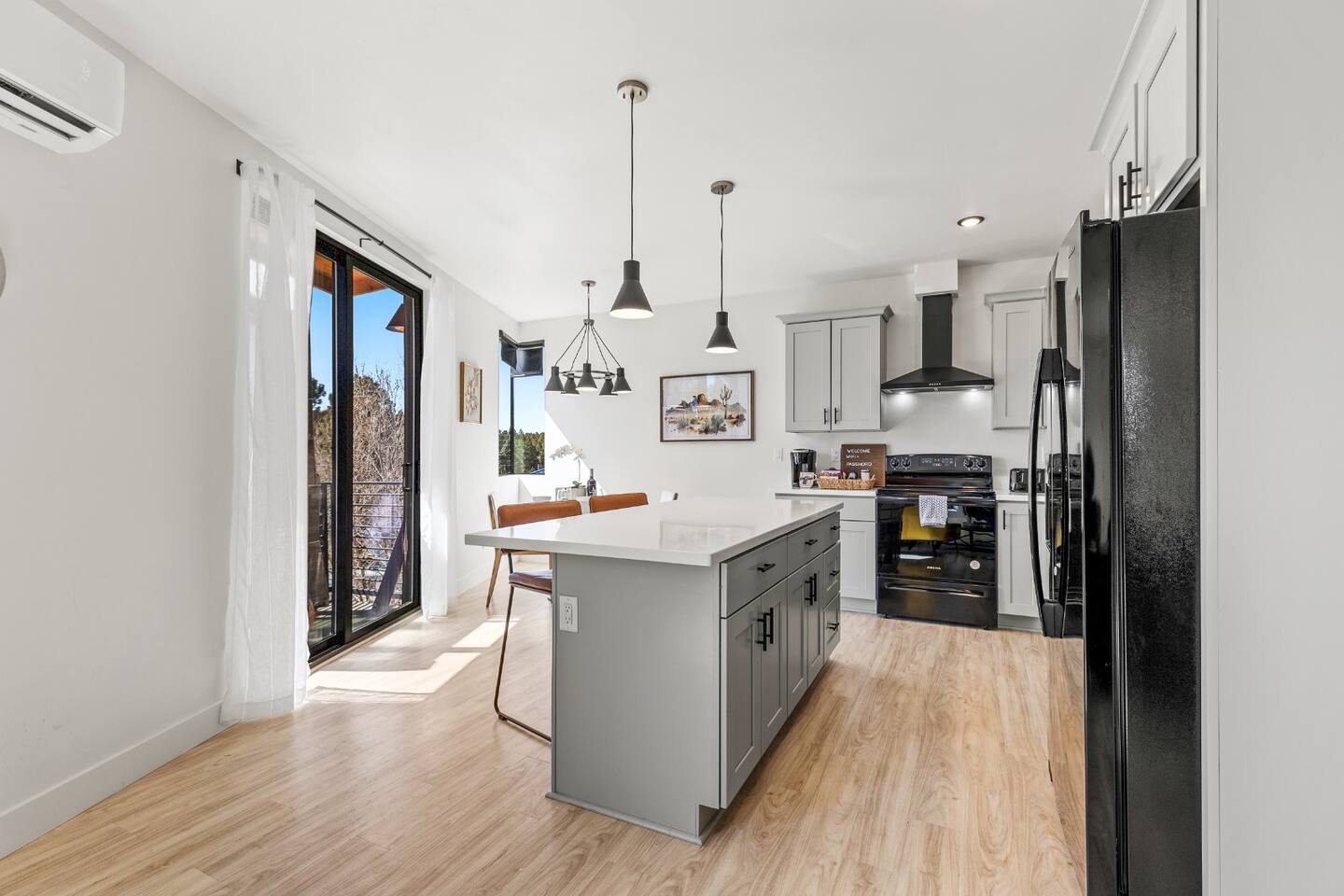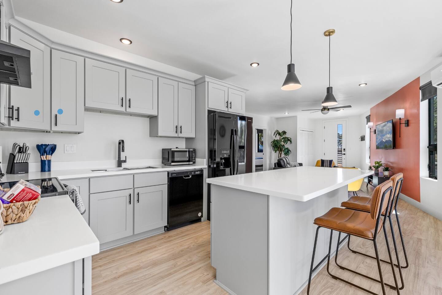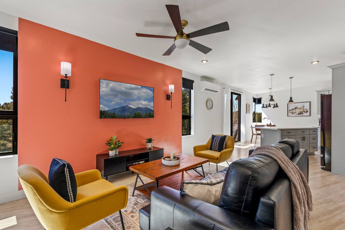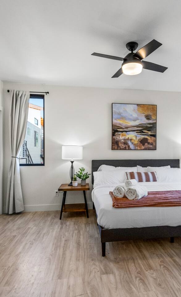Modern 2BR/2BA Retreat • 2 King Beds + Twin • Near Downtown & NAU Enjoy the perfect blend of comfort and convenience in this stylish Flagstaff escape! With 2 spacious king beds, 1 twin bed, and room for up to 5 adults + 1 child, this home is ideal for families, friends, or university visits. 🏡 Your Space Includes: ⭐2 King Beds + 1 Twin Bed (Sleeps 5 Adults, 1 Child) ⭐ Child Friendly High Chair and Pack'n Play ⭐ Fully Stocked Kitchen w/ High-End Appliances & Coffee/Tea ⭐58" Smart TV, Roku & Popcorn Maker – Perfect for Movie Nights ⭐In-Unit Washer/Dryer ⭐2 Free Parking spaces steps away + Secure Keyless Entry ⭐EV Charger available on premises! 💫 Why You’ll Love It: ✔️ Prime Location – Just 10 minutes to Downtown Flagstaff, NAU, & Coconino College ✔️ Luxury Comfort – Hotel-quality beds, blackout shades, and cozy decor ✔️ Entertainment Ready – Stream your favorites or unwind with popcorn & a movie ✔️ Remote-controlled A/C & heat, Wi-Fi, and thoughtful touches ✔️ Pet Friendly – Bring up to 2 furry friends ($100 fee applies) Whether you're here to explore Sedona, hike local trails, or simply relax, this home offers everything you need for a memorable stay. Book now and experience Flagstaff in style! 🌲✨ Nearby Attractions and Spots: 📍Northern Arizona University (NAU): 0.5 miles (about a 10-minute walk) A renowned university located just around the corner from the property. 📍Coconino College: 2.4 miles (7-minute drive) A community college offering various educational programs, located nearby. 📍Downtown Flagstaff: 3.5 miles (10-minute drive) Explore vibrant shops, restaurants, and local attractions in the heart of Flagstaff. 📍Lowell Observatory: 3.1 miles (9-minute drive) A historic observatory where Pluto was discovered in 1930, offering educational tours and stargazing experiences. 📍Riordan Mansion State Historic Park: 2.4 miles (7-minute drive) A 1904 Arts and Crafts-style mansion offering guided tours about Flagstaff's history. 📍The Arboretum at Flagstaff: 10.7 miles (18-minute drive) A 200-acre botanical garden with native plants and seasonal exhibits. 📍Picture Canyon Natural and Cultural Preserve: 4.5 miles (11-minute drive) A 478-acre preserve with hiking trails, petroglyphs, and scenic views.