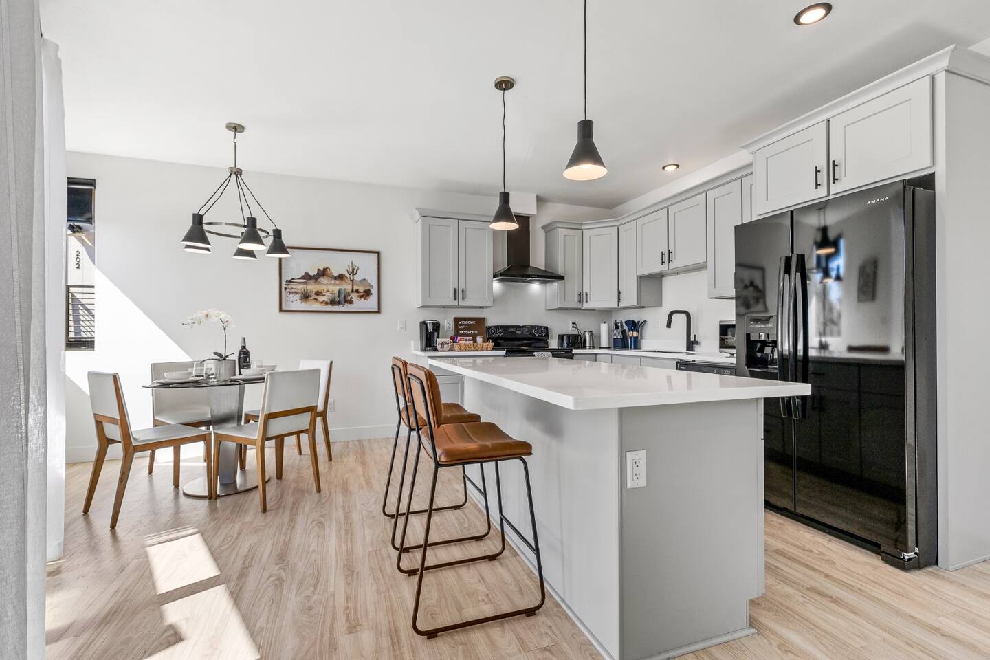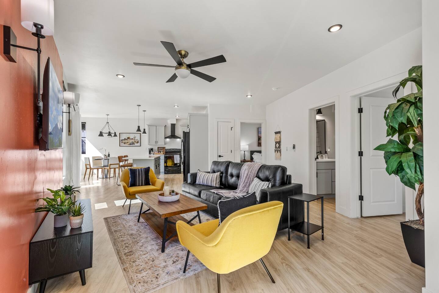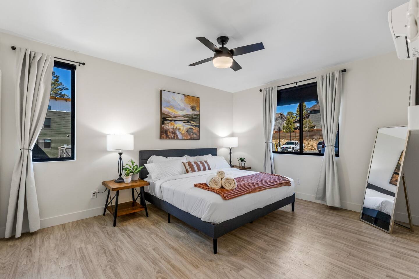Modern 2BR/2BA Retreat • 2 King Beds + Twin • Near Downtown & NAU Enjoy the perfect blend of comfort and convenience in this stylish Flagstaff escape! With 2 spacious king beds, 1 twin bed, and room for up to 5 adults + 1 child, this home is ideal for families, friends, or university visits. 🏡 Your Space Includes: ⭐2 King Beds + 1 Twin Bed (Sleeps 5 Adults, 1 Child) ⭐ Child Friendly High Chair and Pack'n Play ⭐ Fully Stocked Kitchen w/ High-End Appliances & Coffee/Tea ⭐58" Smart TV, Roku & Popcorn Maker – Perfect for Movie Nights ⭐In-Unit Washer/Dryer ⭐2 Free Parking spaces steps away + Secure Keyless Entry ⭐EV Charger available on premises! 💫 Why You’ll Love It: ✔️ Prime Location – Just 10 minutes to Downtown Flagstaff, NAU, & Coconino College ✔️ Luxury Comfort – Hotel-quality beds, blackout shades, and cozy decor ✔️ Entertainment Ready – Stream your favorites or unwind with popcorn & a movie ✔️ Remote-controlled A/C & heat, Wi-Fi, and thoughtful touches ✔️ Pet Friendly – Bring up to 2 furry friends ($100 fee applies) Whether you're here to explore Sedona, hike local trails, or simply relax, this home offers everything you need for a memorable stay. Book now and experience Flagstaff in style! 🌲✨ Nearby Attractions and Spots: 📍Northern Arizona University (NAU): 0.5 miles (about a 10-minute walk) A renowned university located just around the corner from the property. 📍Coconino College: 2.4 miles (7-minute drive) A community college offering various educational programs, located nearby. 📍Downtown Flagstaff: 3.5 miles (10-minute drive) Explore vibrant shops, restaurants, and local attractions in the heart of Flagstaff. 📍Lowell Observatory: 3.1 miles (9-minute drive) A historic observatory where Pluto was discovered in 1930, offering educational tours and stargazing experiences. 📍Riordan Mansion State Historic Park: 2.4 miles (7-minute drive) A 1904 Arts and Crafts-style mansion offering guided tours about Flagstaff's history. 📍The Arboretum at Flagstaff: 10.7 miles (18-minute drive) A 200-acre botanical garden with native plants and seasonal exhibits. 📍Picture Canyon Natural and Cultural Preserve: 4.5 miles (11-minute drive) A 478-acre preserve with hiking trails, petroglyphs, and scenic views.